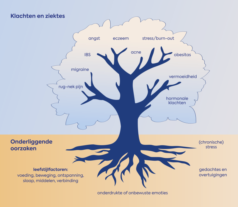 Leefstijl kan écht het verschil maken, weet drs. Lian Tjon Soej Len, Medisch Leider Gezondheid en Leefstijl en tevens anesthesioloog-pijnspecialist bij DC Klinieken. Ze maakt de vergelijking met een boom: “De takken, bladeren en stam van de boom staan symbool voor de klachten of aandoeningen. De medische wereld is biomedisch opgeleid en richt zich vaak nog op het bestrijden van symptomen. Terwijl de grondoorzaak eigenlijk zit in hoe gezond je bodem is. Als je niet investeert in een vruchtbare bodem, blijf je onkruid bestrijden. De echte oorzaak ligt dieper. De gezondheid van onze bodem wordt beïnvloed door onze keuzes in leefstijl zoals voeding, slaap, beweging en ontspanning.”